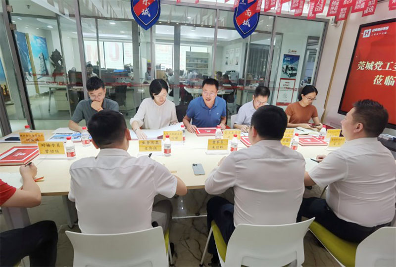 9月20日上午,莞城區(qū)黨工委委員盧毅、人大工委副主任張慶君、住建局局長朱藝科等一行6人蒞臨我公司考察交流。集團(tuán)公司董事長朱紹群、副總麥偉強(qiáng)、財(cái)務(wù)總監(jiān)方曉嵐、營銷部負(fù)責(zé)人雷挺等陪同。