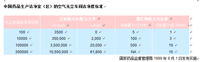 中國藥品生產(chǎn)潔凈室凈化等級(jí)標(biāo)準(zhǔn)