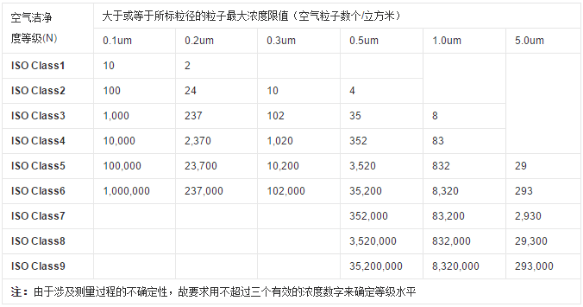 空氣潔凈度等級(air cleanliness class):潔凈空間單位體積空氣中,以大于或等于被考慮粒徑的粒子最大濃度限值進行劃分的等級標(biāo)準(zhǔn)。
