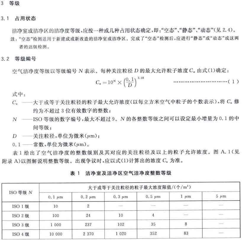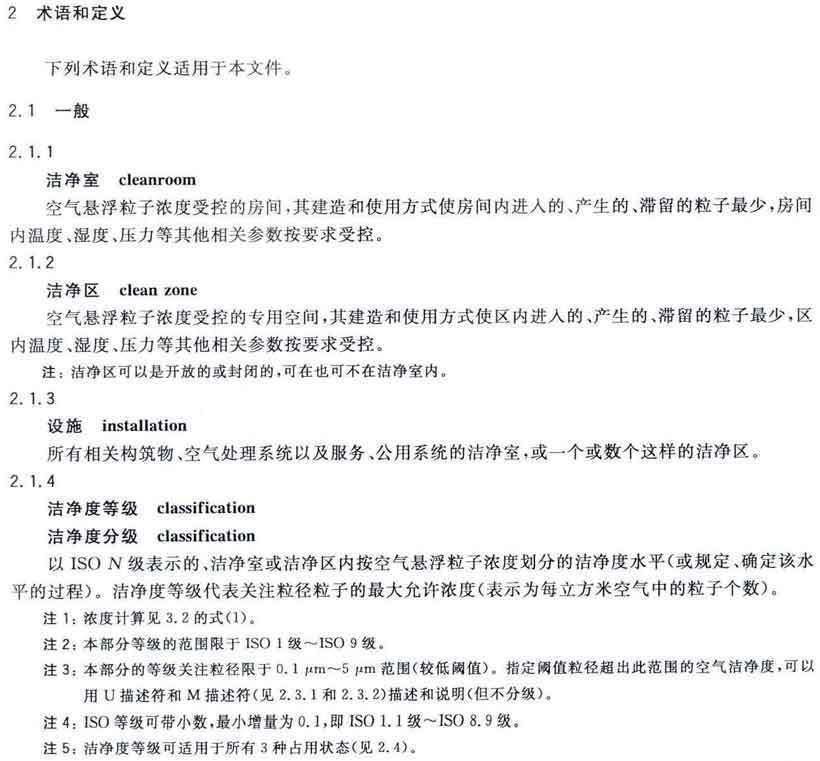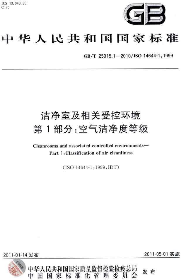 潔凈室及相關受控環(huán)境第1部分:空氣潔凈度等級 GB/T25915.1-2010